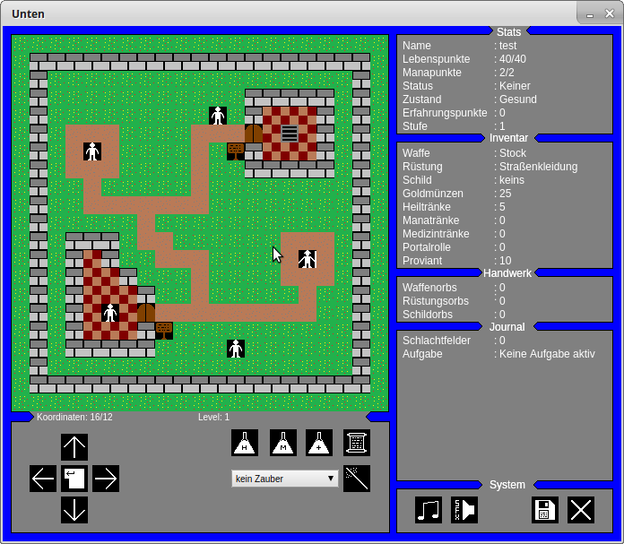Ist ein simples Rollenspiel. Dieses Projekt ist eher eine Spielwiese, um bestimmte Programmiersprachen zu testen.